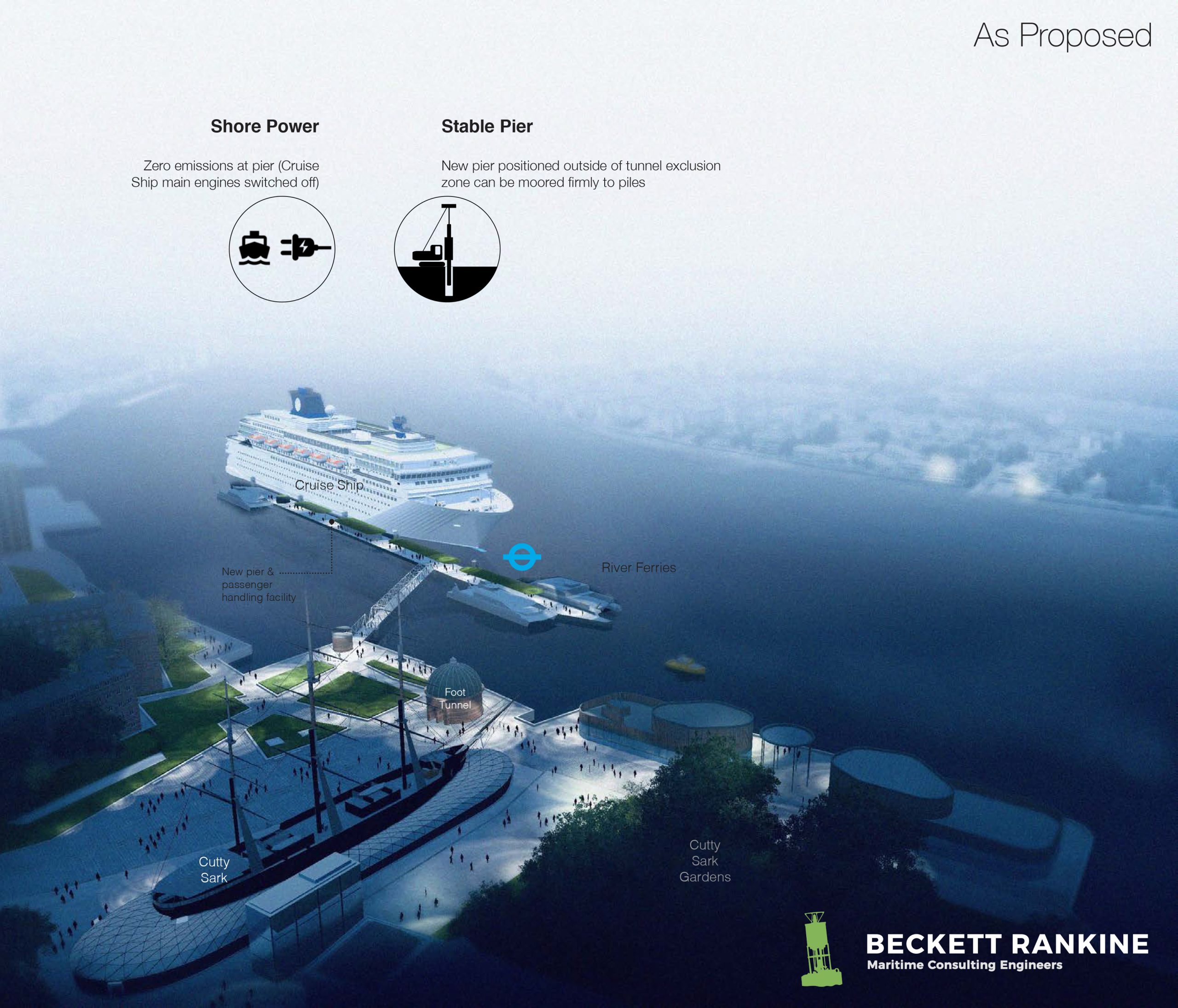 “London is long overdue for a modern cruise terminal that can adequately serve the city’s cruise market. Our proposal sets out a realistic concept that maximises the Greenwich Pier redevelopment opportunity, informed by Beckett Rankine’s deep knowledge of the area, the necessary infrastructure, and the challenges of such a scheme. We hope that our proposal will help unlock London’s cruise terminal potential and pave the way for similar zero-emission cruise ship berths in cities around the world.”