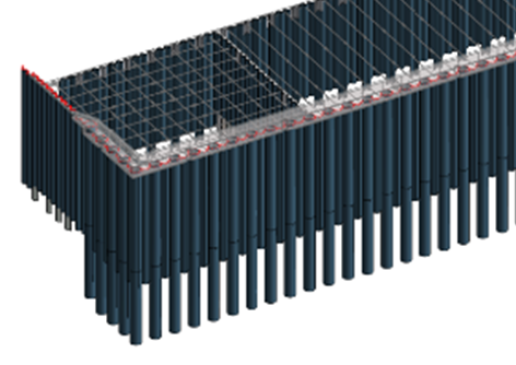 As early-stage site investigations were hindered by the COVID-19 pandemic and a limited budget and timeframe, the designers opted for a flexible approach. Using a range of ground models based on contemporary and historic information available for the site, the structure was therefore designed as a reasonably conventional, standard steel combi-wall. This was made up with large tubular piles and interconnected sheet piles in the form of a cofferdam with a continuous sheet piled anchor wall, see Figure 3.