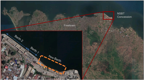 Freetown, Sierra Leone, is home to the West African Coast’s largest natural harbour. The historic port is a bustling hub of import/export and a significant source of the country’s economic prosperity. It is divided into two concessions by the Government of Sierra Leone, one of which is owned by UK’s Nectar Group, operating the NSBT bulk and break-bulk terminal since 2015 following a successful international tender, see Figure 1 below.